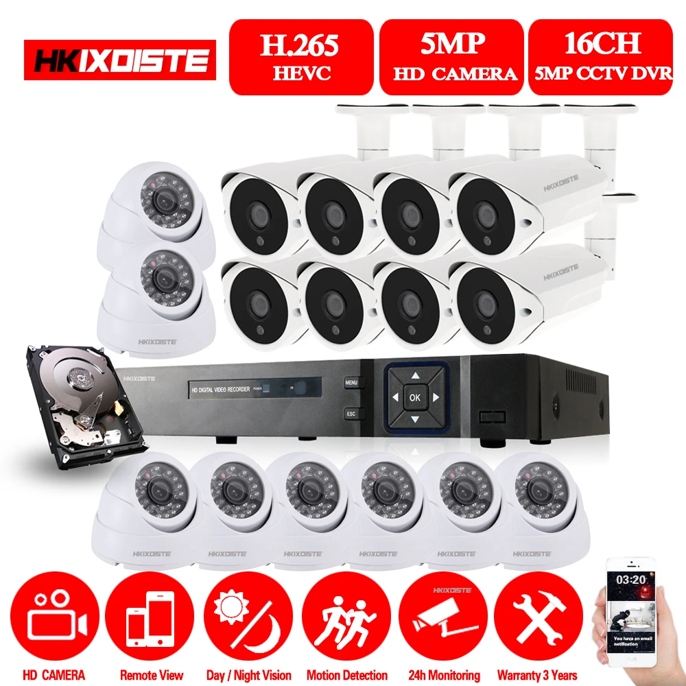 BEST QUALITY 5mp 16CH Video Surveillance System with 16pcs 5.0MP Night Vision Outdoor/Indoor Home Security Camer